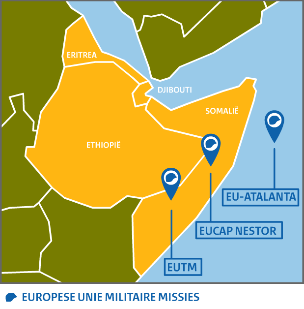 Langs de Hoorn van Afrika loopt een belangrijke traditionele handelsroute die Europa met het Oosten verbindt. Van der Linde legt uit: “Het EU Operations Centre levert als coördinerende organisatie een belangrijke bijdrage in cohesie, informatie-uitwisseling en omgevingsbewustzijn. Vanuit Brussel proberen wij alle activiteiten en hun doelstellingen van de verschillende instanties in kaart te brengen. Zo weet iedereen van elkaar waar ze mee bezig zijn.”
