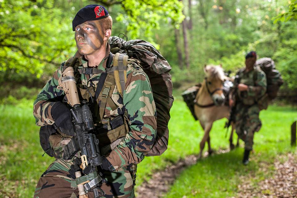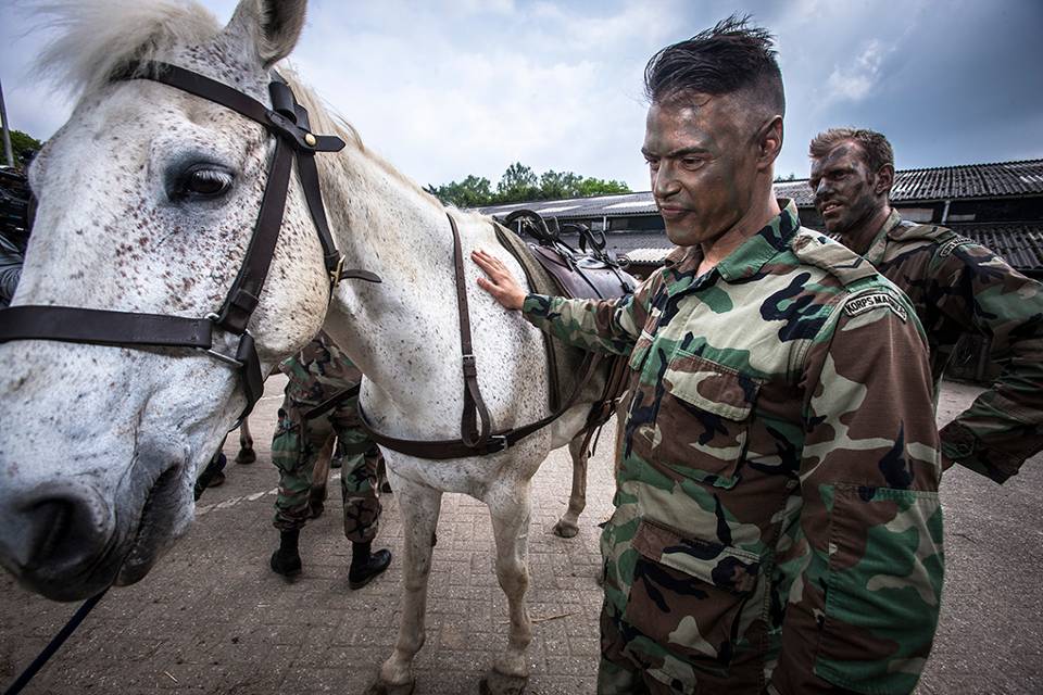 Paarden in het leger. Dat klinkt ouderwets, maar niets is minder waar. Een groep mariniers ondervond dit op 30 april op de Bernhardkazerne in Amersfoort tijdens een basistraining Lastdier. “Hier leren mariniers hoe zij met paarden omgaan, hen verzorgen en beladen. Het is een ouderwets middel, dat perfect aansluit bij onze hedendaagse operaties”, aldus kapitein der mariniers Steven Baan.