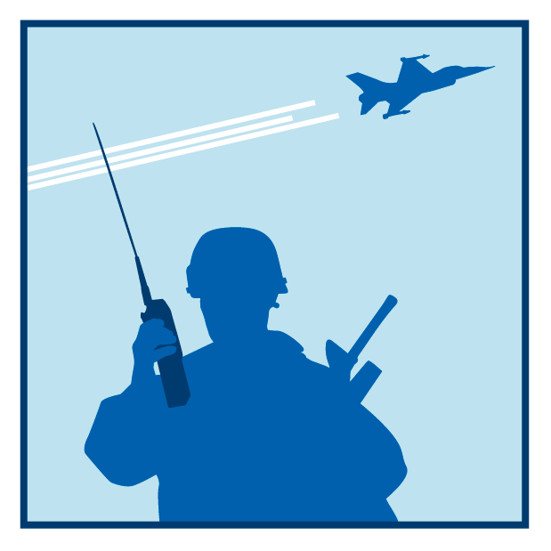 Joint Terminal Attack Controller (JTAC) leidt de luchtsteun in goede banen. Laser Operator straalt het doel aan, waardoor laser geleide bommen en raketten nauwkeurig hun bestemming vinden.