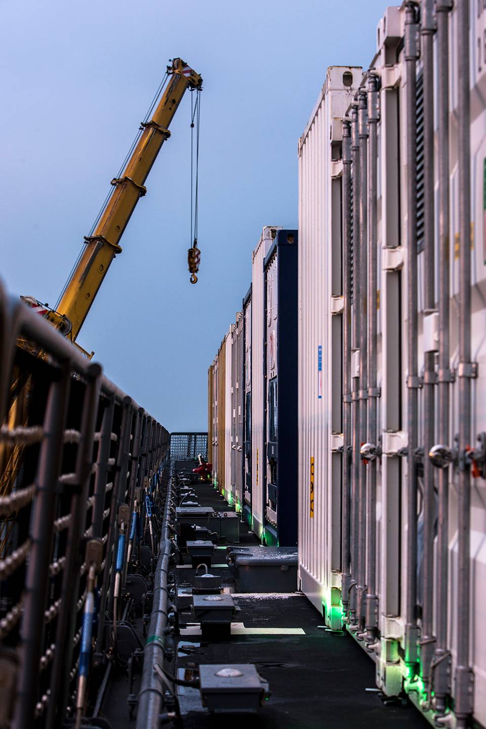 “Elke vierkante meter hier in Den Helder werkt zo’n beetje mee aan deze operatie.” Vanaf de steiger op marinebasis Den Helder ziet luitenant ter zee 2OC Leontien Frielink-de Vrught dat een grote container aan boord van de Karel Doorman wordt gehesen. Het gaat om een mobiel laboratorium van de organisatie Hospitainer. Eigenaar Rolof Mulder kijkt tevreden toe. “Dit is een heel bijzonder moment. Prachtig om te zien dat dit is gelukt!”