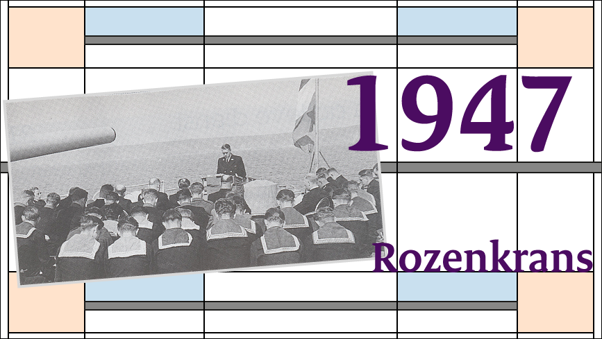 “Het was mijn gewoonte ook op de grote christelijke feestdagen een dienst te houden, ook al waren verreweg de meeste manschappen met verlof. Zo ook op de Kerstmorgen in 1949. Toen ik m’n toga had aangetrokken in de kleine consistorie, liep ik de Kapel binnen. Er zat één matroos.