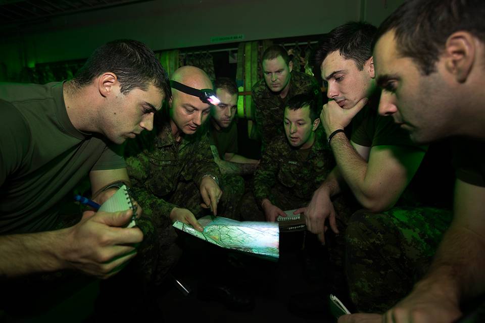 “De planners hangen letterlijk met z’n tweeën boven de kaart”, geeft Schepel aan. “En dat doen ze ook op de grond: een Canadees trapt de deur open, een Nederlandse marinier stapt naar binnen.” Zo evacueren Canadezen en Nederlanders samen ambassadepersoneel uit een onveilig gebied. Later in de oefening zuiveren 5 ‘smaken’ mariniers en landmachters samen een dorp van terroristen.