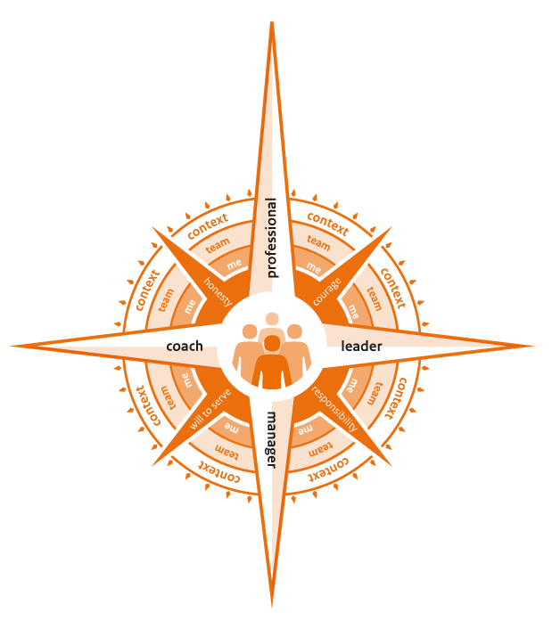Collega-docent van Alderwegen knikt: “Iedereen heeft zijn eigen voorkeursstijl en –rol. Bewustwording van jouw eigen sterke en minder ontwikkelde kwaliteiten helpen je een betere leider te worden.” Het leiderschapskompas (zie inzet) kan hierbij helpen. Leidinggevenden die worstelen met een keuze kunnen deze visie als ‘tool’ gebruiken.