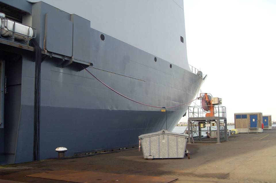 De Johan de Witt is als eerste van de 2 Landing Platform Dock’s uitgerust met een hoogspanningsaansluiting. Zodra de financiën rond zijn, wordt ook de Rotterdam aangepast. De Karel Doorman is bij de bouw direct uitgevoerd met een hoogspanningsaansluiting. Dat kon ook niet anders volgens hoofd technische dienst van de Karel Doorman, kapitein-luitenant ter zee Glijn van Marion. “Zelfs als we binnen liggen kunnen we vanwege het benodigde vermogen geen gebruik maken van laagspanning. We hebben alleen voldoende aan laagspanning wanneer het schip in onderhoud gaat. Dan gebruiken we namelijk alleen de verlichting en ventilatie.” Van Marion is dan ook blij met de tijdelijke hoogspanningsaansluiting op steiger 21, die speciaal voor het Joint Support Ship (JSS)werd aangelegd.