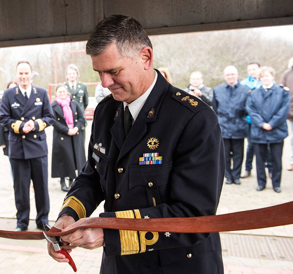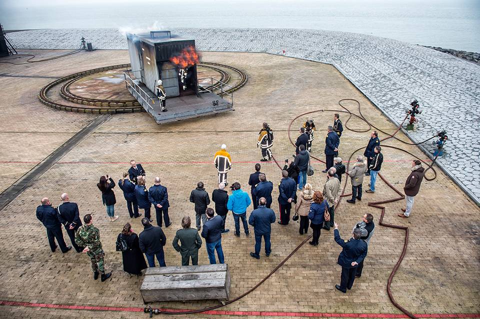 “Een groen pak in een blauwe wereld, daar moest men wel even aan wennen”, grinnikt Patrick. “En ik moest ook wennen, bijvoorbeeld aan de totaal andere cultuur, een ander soort discipline. Toch kon ik al snel goed uit de voeten, mede door de snelle acceptatie van de directe collega’s. We zijn hier echt heel praktijkgericht bezig, leren door te doen staat centraal. Het mooie is dat ik zelf daardoor ook weer kennis opdoe, bijvoorbeeld hoe het er aan boord van schepen aan toe gaat. Daar is brandbestrijding of CBRN-werk toch zeer specifiek. Binnenkort ga ik een keertje meevaren, om zelf eens te ervaren hoe men het geleerde in de praktijk brengt. Lijkt me erg interessant!”