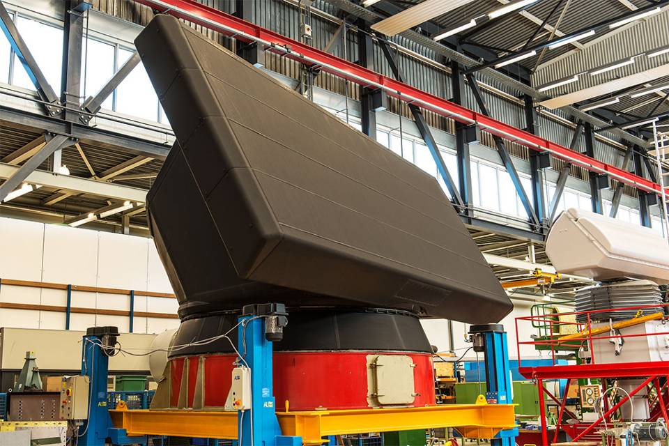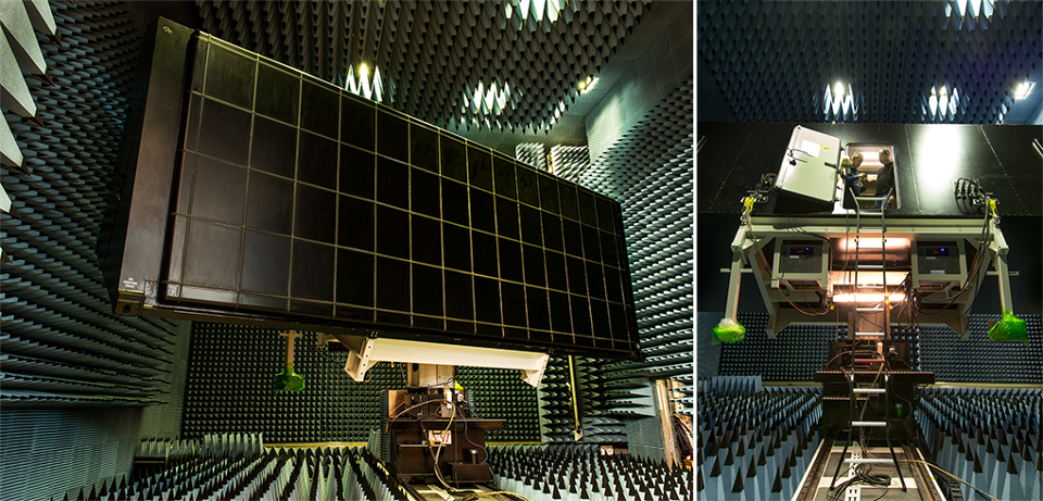 Thales test zijn nieuwe radar in de Near Field Test Range van de Koninklijke Marine, omdat dit de grootste indoor meetruimte is van Nederland. “We zijn bij de DMI uitgekomen, omdat deze radar binnen getest moet worden”, vertelt Corné Stoffels, systeemengineer bij Thales. Door de grote hoeveelheid aan zenders in de antenne wordt de bundel die de radar uitzendt heel groot. “Als we nu buiten gaan meten, komt er te veel reflectie terug van voorwerpen in de nabije omgeving.”
