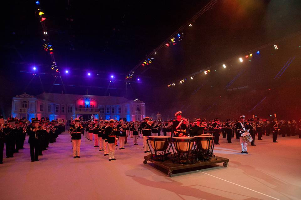 Alle (oud-)medewerkers van Defensie kunnen voor € 10,- per persoon naar de Nationale Taptoe. Deze vindt plaats van 24 tot en met 27 september 2015, in AHOY Rotterdam. Hier speelt bijvoorbeeld de Marinierskapel van de Koninklijke Marine, samen met de Tamboers en Pijpers van het Korps Mariniers. De muzikanten begeleiden een spectaculaire amfibische demonstratie. Uit Polen is er de Representative Band of the Polish Borderguard, Canada stuurt de Delta Police Pipe Band en de VS komen mogelijk met de USMC Band. Tickets zijn te bestellen via www.nationaletaptoe.nl (‘Actie Defensie’, actiecode NT2015DEF). (Foto: Mediacentrum Defensie)