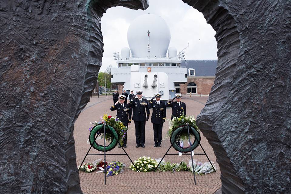 De jaarlijkse herdenkingsbijeenkomst van CZSK vond 28 mei voor de achtste keer plaats bij het brugcomplex van ex-Hr. Ms. De Ruyter, achter het Marinemuseum. Tijdens de bijeenkomst zijn 43 in actieve dienst overleden militairen en burgermedewerkers van CZSK (1 mei 2014 tot 1 mei 2015) herdacht. Dat gold ook voor in actieve dienst overleden militairen en burgermedewerkers uit eerdere jaren, waarvan nabestaanden aanwezig waren. Tijdens de herdenking hield onder anderen Commandant Zeestrijdkrachten LTGENMARNS Rob Verkerk een toespraak. Tevens werden de namen van de overledenen opgelezen en vonden er kransleggingen plaats. (Foto: Mediacentrum Defensie)