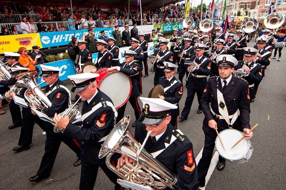 Hoe dan ook passeerde deze groep, net als collega-militairen, onder luide toejuichingen van het publiek en militaire begroetingen van fiere vlagofficieren de eindstreep. Binnen deze groep ook muzikanten van Marinierskapel en Tamboers en Pijpers.