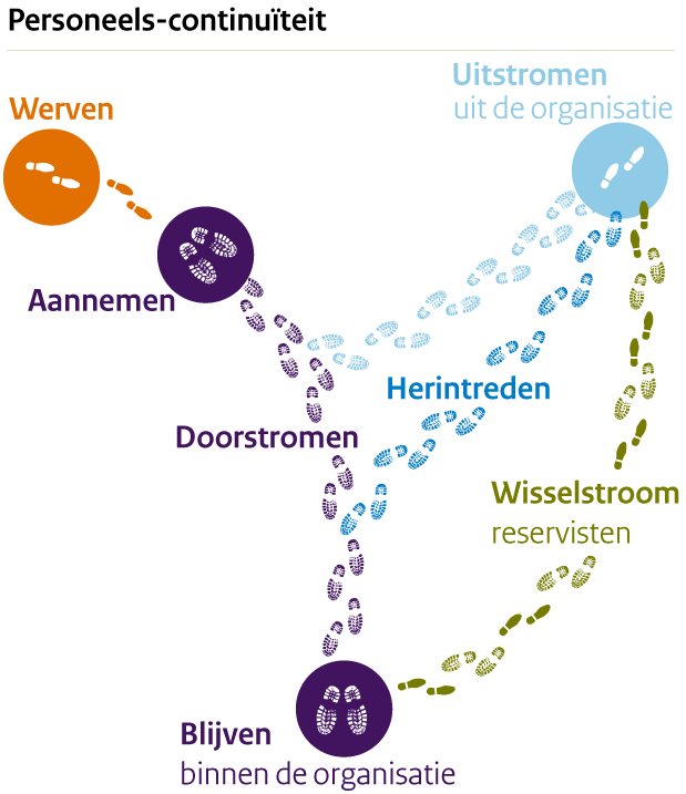 De goede mensen binnenhouden en zorgen voor een natuurlijke doorstroom. Dat is de volgende gang van Hulskers menu. “Uit gesprekken met mensen die vertrekken blijkt dat zij nog wel eens perspectief missen voor de lange termijn. Ons personeelssysteem is vooral gericht op de volgende plaatsing. Binnen het officierenkorps valt de uitstroom te overzien, maar van de korporaals en sergeanten Operationele en Technische Dienst vertrekken er jaarlijks teveel zonder dat hun Fase 2-contract afloopt. Dus ze hoeven helemaal niet weg, maar kiezen er toch voor. Vervolgens vinden ze een goede baan en gebeurt het ook nog wel dat ze oud-collega’s meetrekken naar buiten.”