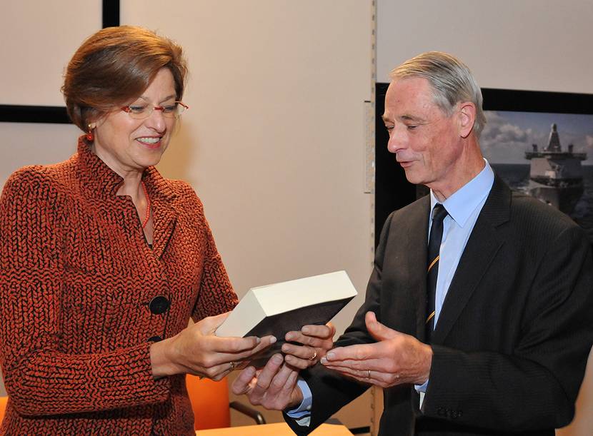 “Het blijft van groot belang dat we als Tweede Kamer en regering diep doordrongen zijn van wat het betekent om als militair te worden uitgezonden naar een oorlogsgebied”, aldus Tweede Kamerlid Angelien Eijsink (PvdA). Zij zei dit bij de presentatie van het boek ‘Overstag en toch op Koers’, van vice-admiraal b.d. Egmond van Rijn. Eijsink ontving het eerste exemplaar. In zijn boek beschrijft Van Rijn het personeelsbeleid van de Marine in de naoorlogse periode. “Je zou verwachten dat met name de snelle ontwikkelingen van de techniek op het personeel een grote impact zouden hebben; in de praktijk blijkt dat nauwelijks het geval. De marineman of -vrouw weet zich telkens uitstekend aan te passen en bij te scholen. De democratisering, de plaats van de vrouw in leger en marine; zulke onderwerpen hadden veel meer impact.” Het tweede exemplaar ging naar schout-bij-nacht Ben Bekkering, Plaatsvervangend Commandant Zeestrijdkrachten. Hij beaamde dat er in de beschreven periode, 1945-2005, veel was veranderd. “Marinemensen die in deze periode hebben gediend zullen veel herkennen.” ‘Overstag en toch op koers. De Koninklijke Marine en haar personeel 1945-2005’ van W.J.E. van Rijn is in paperback uitgegeven door Van Wijnen (ISBN-nr.: 9789051945287). De prijs: € 39,50.