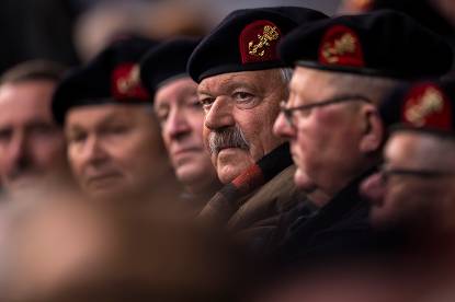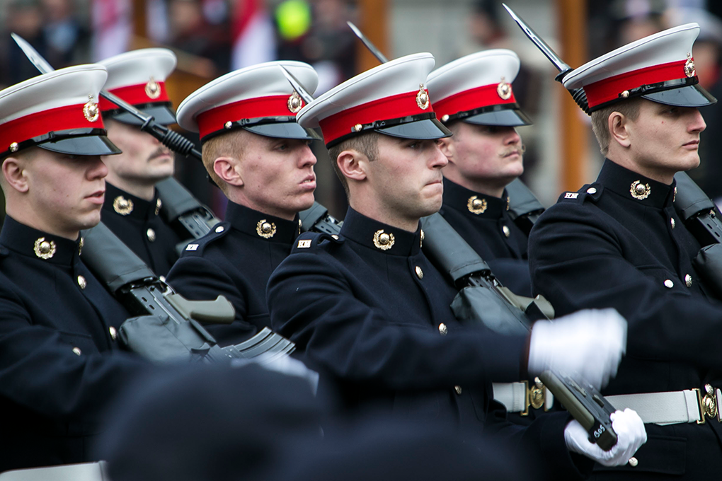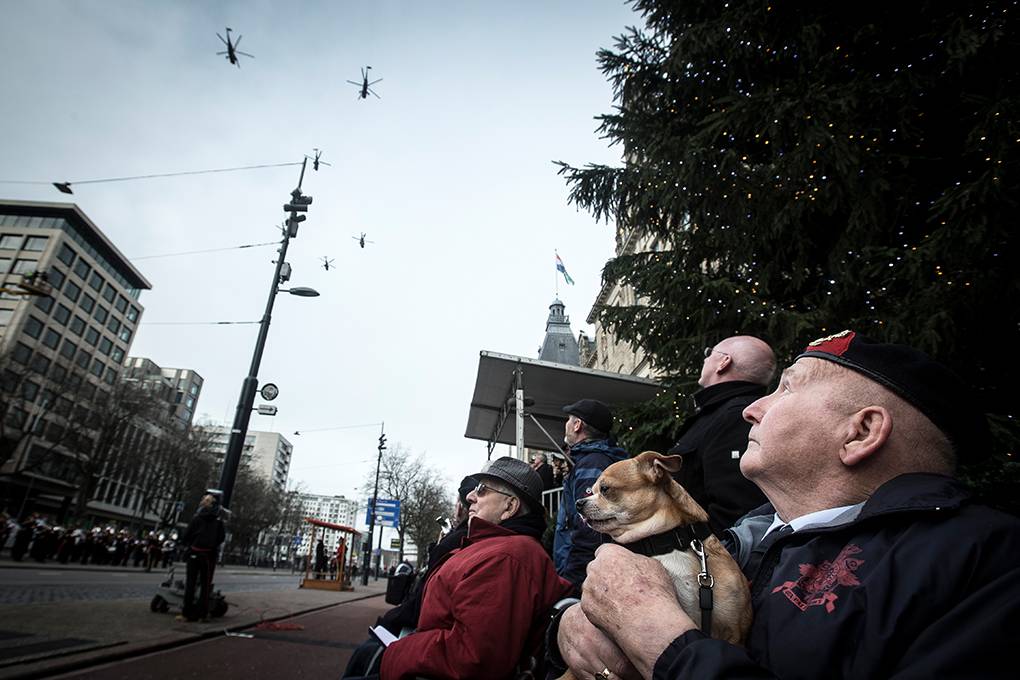 “Rotterdam lijkt wel een oorlogsgebied”, merkt een voorbijganger op. 4-tonners blokkeren de toegangswegen naar de Coolsingel, Volkswagens Amarok rijden af en aan en op elke straathoek staan militairen met de karakteristieke blauwe baret met rood padje en de rode bies op de broek. Onder begeleiding van de Marinierskapel en de Tamboers en Pijpers komen 2.000 (oud)-mariniers aangemarcheerd. Ze stellen zich op voor het Rotterdamse stadhuis.