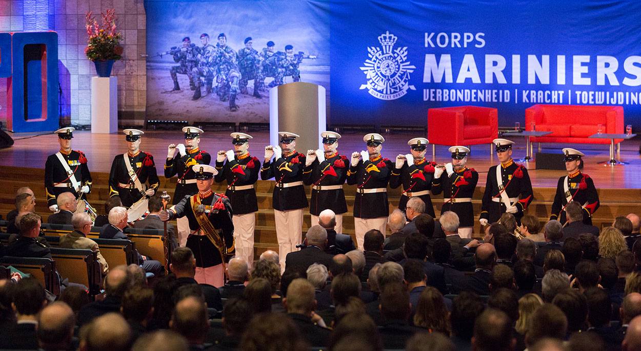 Wat is leiderschap? Wat kenmerkt goed leiderschap binnen het Korps Mariniers? Hoe werkt dat buiten de militaire setting? Een rijtje sprekers en een zaal vol (oud-)mariniers en andere belangstellenden zochten begin deze maand naar de antwoorden. Dat gebeurde onder leiding van dagvoorzitter Eva Brouwer tijdens het symposium ‘Leiderschap sinds 1665’. “Stop met mensen te vertellen wat ze moeten doen.”