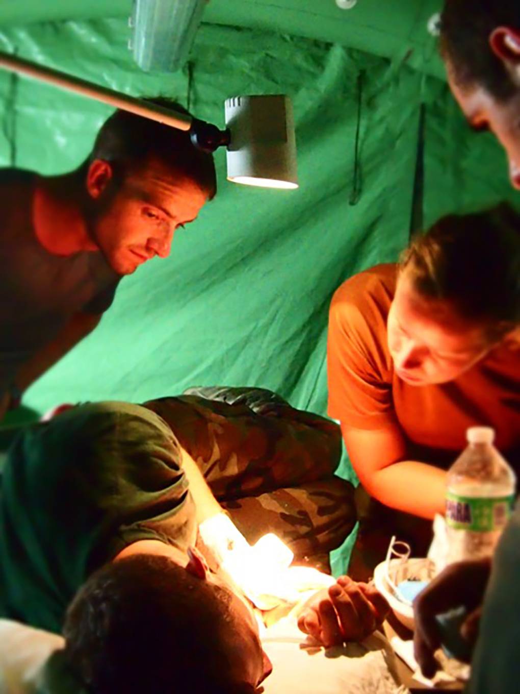 “Op medisch gebied hebben wij eigenlijk een grotere verantwoordelijkheid dan bijvoorbeeld verpleegkundigen in een ziekenhuis. Er is niet altijd een dokter in de buurt, dus is het aan mij en mijn collega’s om beslissingen te nemen. Die grote verantwoordelijkheid, gecombineerd met het avontuur, maken dat ik het prima naar mijn zin heb bij de mariniers.”