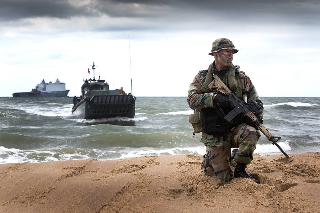Dat lijkt misschien gesneden koek voor de Nederlandse vloot en mariniers. Maar dat ligt genuanceerder, benadrukt de commandeur. “De inzet van de mariniers in Irak en Afghanistan betrof vooral landoptreden”, schetst Kramer, commandant van de taakgroep. “Het amfibisch opereren moesten we weer opfrissen, met name in groot verband.”