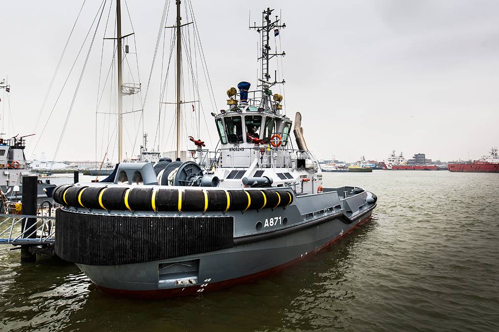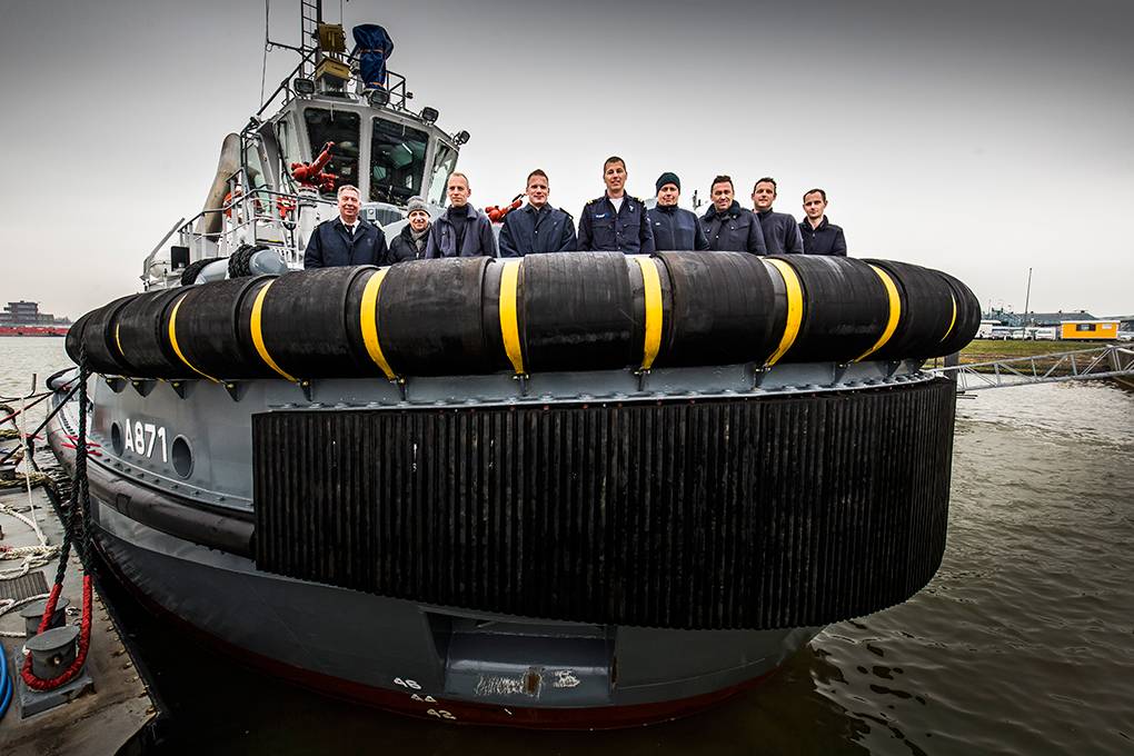 “Met de komst van Zr. Ms. Rotterdam in 1998 en later de Johan de Witt ontstond de behoefte aan sterkere sleepboten”, vertelt kapitein-luitenant ter zee Erik Willemsen, hoofd Havenfaciliteiten van het Commando Zeestrijdkrachten. “De boten van de Linge-klasse hadden onvoldoende vermogen voor veilige assistentie. Incidenteel werden schepen dan ook met 3 boten verhaald. In 2000 is al de initiële behoeftestelling gedaan, maar dat bleek geen gelopen race. Door de grote reorganisatie en geldgebrek bij Defensie is het project meerdere keren naar achteren geschoven. Met de komst van de nog grotere Karel Doorman werd de behoefte aan sterkere slepers echter nog dringender. Na een Europese aanbesteding is uiteindelijk in 2014 het contract getekend voor de bouw van de boten. Damen Shipyards voldeed het beste aan de eisen, dus mocht ze bouwen.”