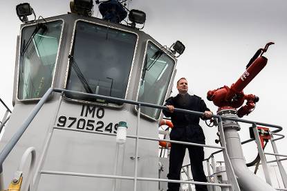Met het construeren van marineschepen in Roemenië heeft Damen inmiddels veel ervaring; ook de Karel Doorman en Ocean-going Patrol Vessels van de KM zijn hier samengesteld. Van het gewenste type sleepboot (2810) bouwde Damen er overigens al 280, die over de hele wereld opereren. “Voor de bouw van de 3 boten van onze Noordzee-klasse trok de Defensie Materieel Organisatie ruim 21,3 miljoen euro uit”, aldus luitenant ter zee 2OC Herman Schooljan, hoofd Nautische Dienst van Havenfaciliteiten. “De 4 boten die zij vervangen, zijn verkocht aan een Britse sleepbootmaatschappij. Hoewel ze al 30 jaar oud zijn, zijn ze verder nog prima. De sleper Gouwe houden we trouwens. Deze laatste is pas 19 jaar oud en kan in tegenstelling tot de nieuwe boten wel varen op de Waddenzee en het IJsselmeer. De boten van de Linge-klasse steken namelijk maar 2,60 meter diep; bij de Noordzeeklasse is dat 4,70 meter. Voordeel van die diepgang, meer massa en meer breedte (1 meter) is wel dat de boten tot seastate 5 inzetbaar zijn, in plaats van seastate 4 van de Linge-klasse. Overigens is seastate 5 geen ideale situatie om in te werken, want dan begint iedereen langzaam donkergroen te worden.”