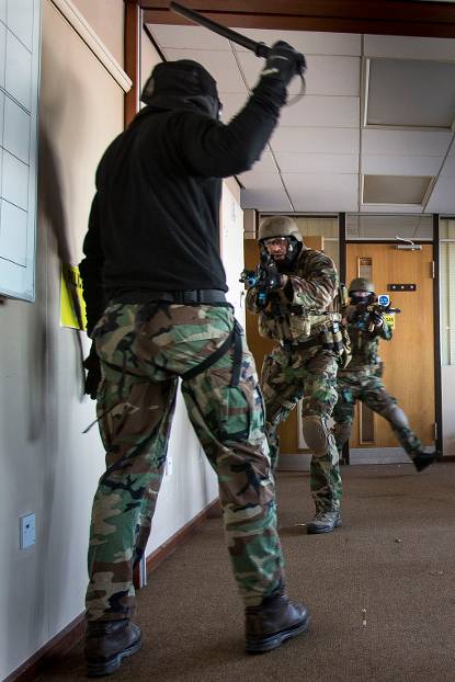 De Northumbria Police Marine Unit bij de Engelse stad Newcastle trilt op zijn grondvesten. In een soepele run doorzoeken groen gehelmde cursisten van de Close Quarter Battle Instructors Course (CQBIC) een gebouw, waarin volgens het oefenscenario terroristen zitten. “Tango down. Room clear.” De kust blijkt veilig. Alleen wie op alle onderdelen hoog scoort, haalt de eindstreep van deze nieuwe opleiding die door het Korps Mariniers wordt gegeven.