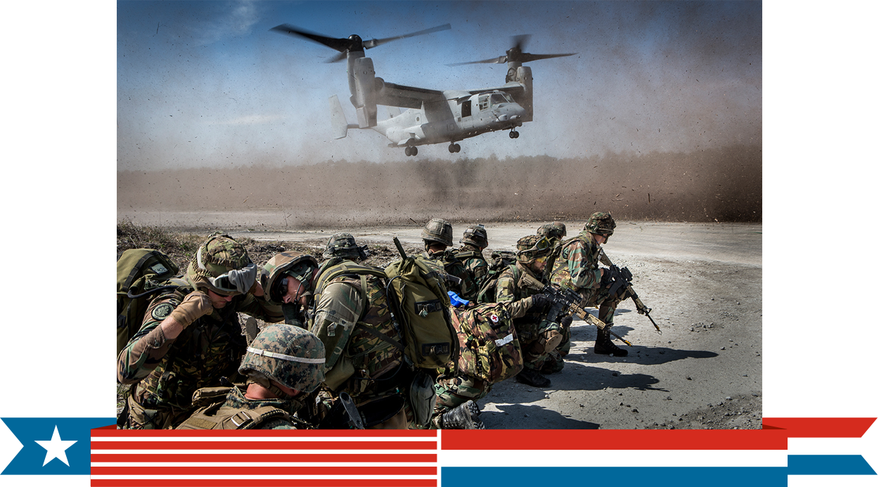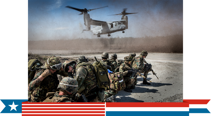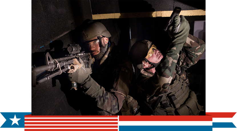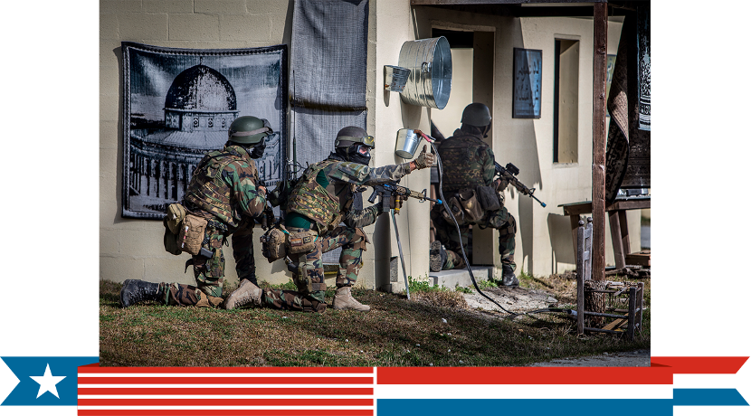 Het 32ste Raiding Squadron (RSQN) van Aruba is in maart 3 weken lang in de weer op Camp Lejeune, in de oostelijke staat North-Carolina. ‘The home of the expeditionary force’ – 45.000 militairen van het United States Marine Corps (USMC) wonen en werken hier – heeft een hartelijk welkom bereid aan de broeders van het Nederlandse Korps Mariniers. Het squadron is aangevuld met een FRISC-peloton uit de West, snipers, een team met kleine onbemande verkenningsvliegtuigen van het type Raven, ‘Joint Tactical Air Controllers’ (JTAC) en logistieke plus medische ondersteuning. In totaal zo’n 150 mensen.