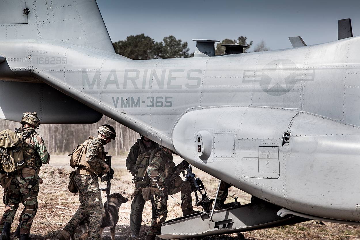 Ratelende MAG-mitrailleurs, opspattende verfpatronen; in het nagebootste Afghaanse dorp wordt de rust ruw verstoord. De mariniers van het 32ste Raiding Squadron, voorzien van Star Wars-achtige maskers, doorkruisen de straatjes en kammen gebouwen uit. In de realistische oefenomgeving van het Amerikaanse Camp Lejeune scherpen de mariniers hun procedures aan rond ‘Military Operations in Urban Terrain’. Wat op deze immense basis nieuw voor ze is: werken met Cobra-gevechtshelikopters en honden, schieten vanaf FRISC’s op doelen op land en meeliften met het ‘hybride’ luchtvaartuig Osprey. Kortom: Uncle Sam toonde zich een ware suikeroom.