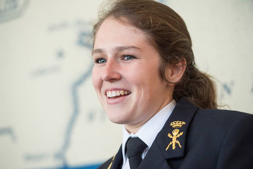 Na het VWO zag Sophie het niet zitten om een universitaire opleiding te doen waar ze met 100'en medestudenten in collegezalen terecht zou komen. Tegelijk zocht ze naar de juiste verhouding tussen theorie en praktijk. “Bij de marine bestaat die mooie combinatie. Ook het groepsgebeuren bij de KM sprak mij aan; ik voel mij meer teamspeler dan individualist. Je gaat naar zee en zult het moeten doen met het schip, de mensen en de spullen die je hebt. Mooi toch?”