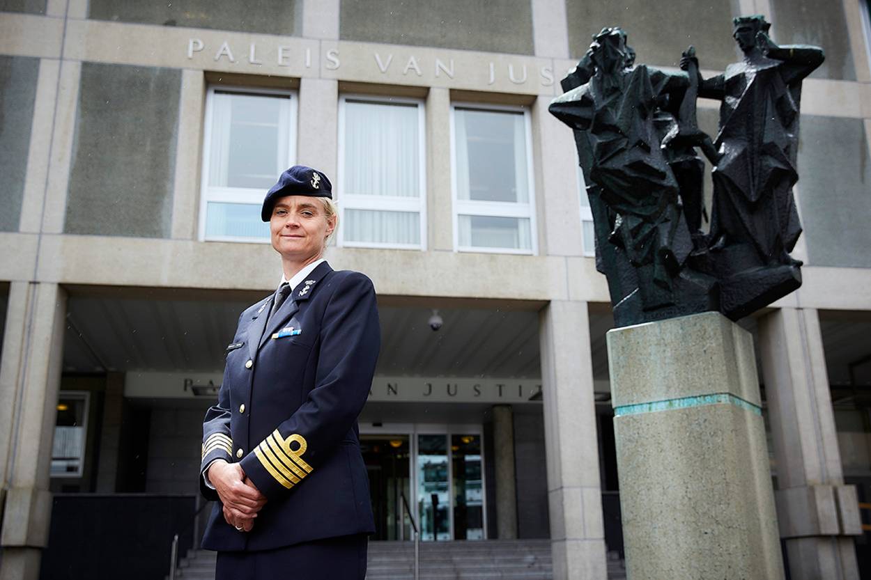 Rechter kapitein ter zee (LD) Anne-Marie Schuurman heeft haar collega’s en griffiers weleens laten meevaren op Zr. Ms. Rotterdam. “Zo konden ze zelf ervaren hoe het is om bovenop elkaars lip te leven, werken en slapen. Ze hadden het nog luxe, met 2-persoons hutjes. Mariniers delen op de Rotterdam hun slaapruimte met 35 man.” Schuurman is de eerste vrouw die namens de krijgsmacht zitting heeft genomen in een bijzonder rechtscollege: de Militaire Kamer van de Rechtbank Gelderland.