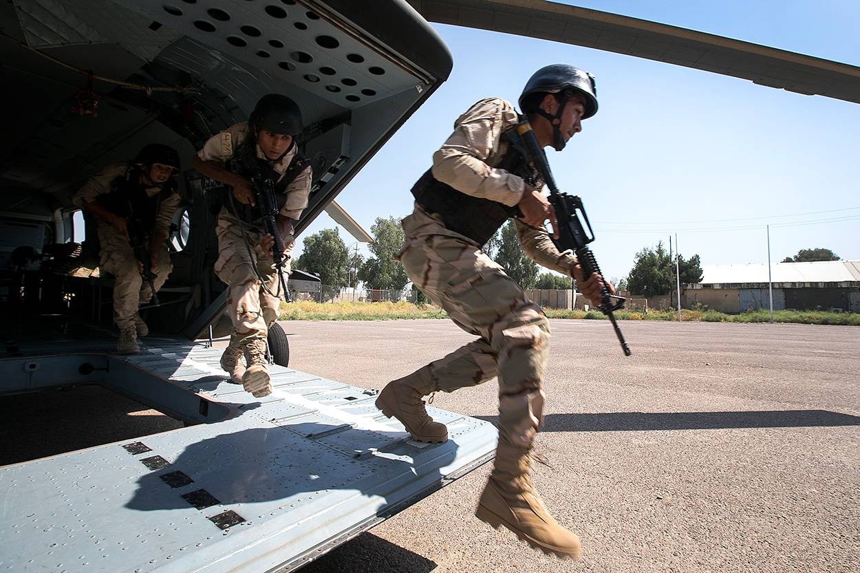 “In mijn jonge jaren draaide ik uitzendingen in Eritrea en Ethiopië”, vertelt sergeant van de mariniers Mark. “Later opereerde ik in Irak, Somalië en Afghanistan. Deze missie is voor mij persoonlijk minder uitdagend in vergelijking met mijn eerdere uitzendingen. Dat maakt het echter niet minder belangrijk. Het doel erachter heb ik helder voor ogen. Ik heb in Bagdad ook persoonlijke doelen gesteld. Ik wil beter worden in het antiterreur-werk. We hebben al getraind met het afdalen per ‘fast rope’ uit helikopters en het ruimen van explosieven. Daarnaast wil ik met schieten op een hoger niveau komen.”