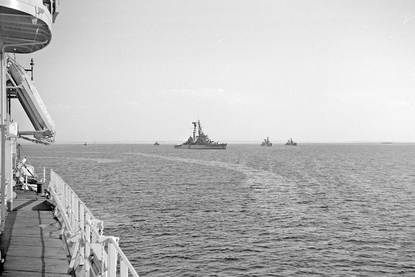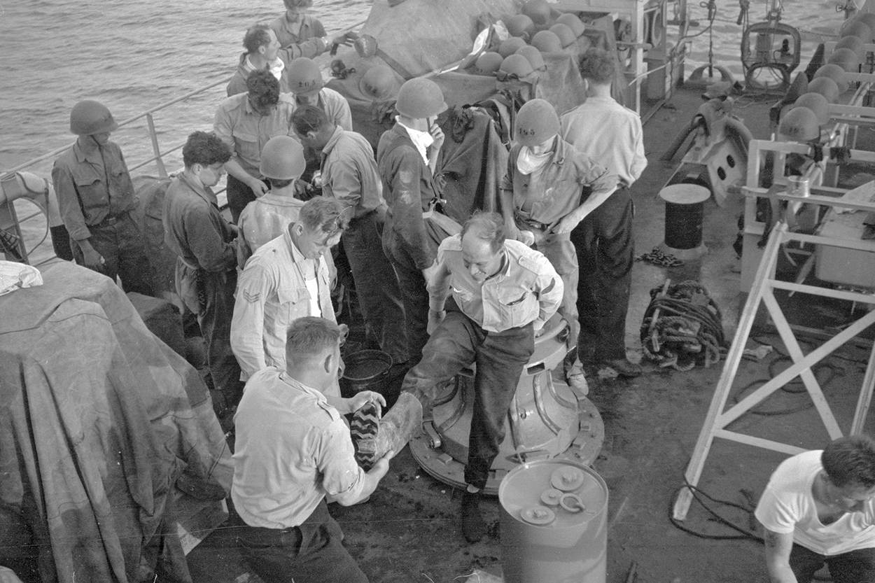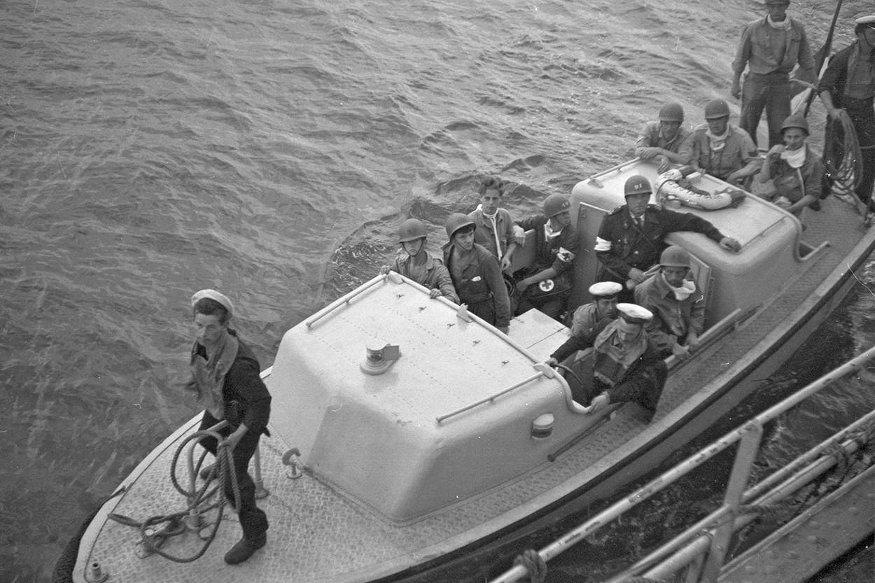 De laatste shifts waren de avond ervoor teruggekeerd naar de Nederlandse schepen. Voor het laatst werden ze ook ontsmet. “Als je weer aan boord kwam, ging je in je blootje op het voordek onder de sproeier met water en Lisol”, aldus Sporken. “Ook de schoenen werden gedesinfecteerd en je kleren verdwenen in de kookwas. Die kwamen er natuurlijk veel te klein uit.”