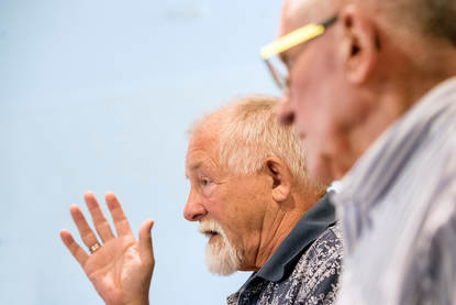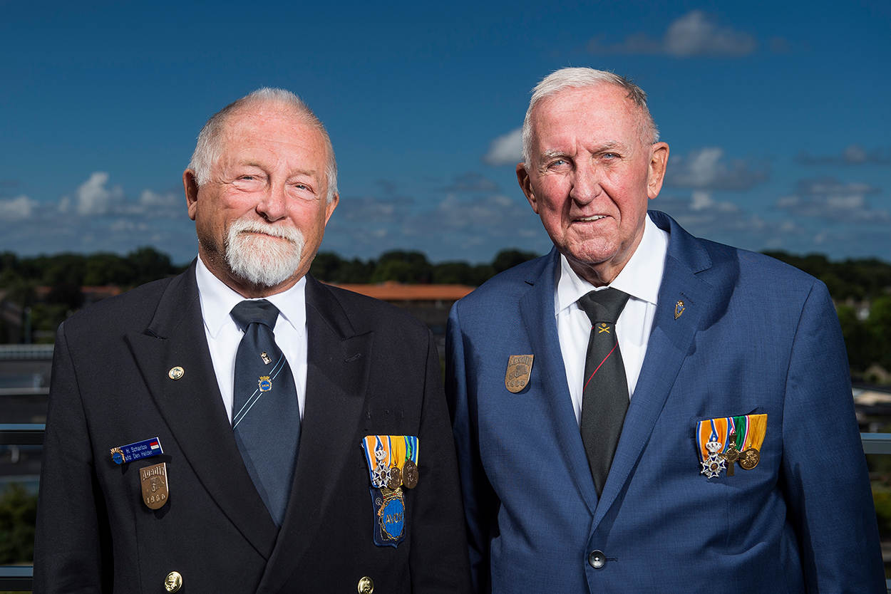 Rinus Sporken en Harry Scharloo waren op het moment van de ramp geplaatst op de kruiser Hr. Ms. De Ruyter, het vlaggenschip van Smaldeel 1. Sporken was een 29-jarige korporaal-geschutkonstabel en Scharloo een 19 jarige elektromonteur eerste klas. Sporken koos voor de marine nadat hij na de oorlog – en verblijf in 2 Jappenkampen – 5 schooljaren in 2 jaren had geperst. “Ik was klaar met leren en wilde actie”, aldus Sporken. Scharloo was eveneens op zoek naar avontuur, wilde iets van de wereld zien én een vak leren.