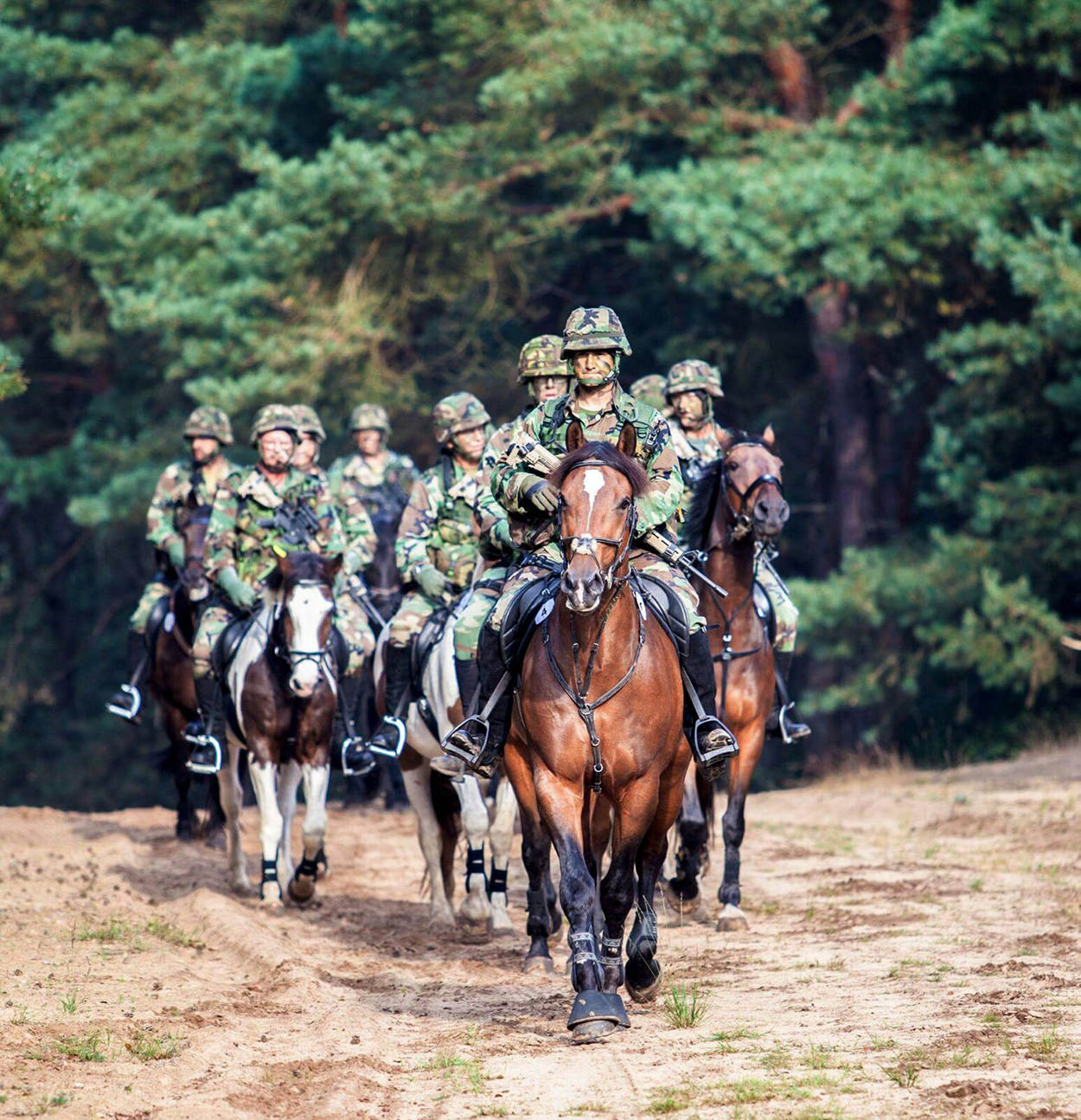 De Militaire Prestatie Tocht Te Paard (MPTTP) vond onlangs plaats op de Harskamp en de Hoge Veluwe. Het evenement, waarbij man en paard gezamenlijk een parcours met opdrachten afleggen, trekt ieder jaar meer aandacht. Dit keer kwamen 172 combinaties, van 20 teams, aan de start. Onder de deelnemers ook een groot aantal CZSK-militairen. Sommigen sloten zich aan bij teams van hun functionele organisatie, zoals het Militair Huis. Anderen sloten zich individueel bij andere teams aan. CZSK zelf bracht 2 teams aan de start. Eén daarvan was de lastdiergroep, geleid door KAPTMARNS Melle van Schaijk. Het team bestond verder uit 6 marinier-begeleiders, die 5 volledig tactisch bepakte paarden meevoerden. Van de mariniers waren 4 man reservist en 2 man ‘wounded warrior’, te weten Casper Voermans en Eric van der Velzen. Ook zij legden het parcours van 20 kilometer lopend af, met de lastdieren aan de hand. Een prestatie van formaat! Ook de bereden groep van CZSK oogstte veel waardering. Het team vormde één van de grootste groepen (13 ruiters) die het 35 kilometer-parcours aflegden. De actief-dienende mariniers en CZSK-reservisten legden het traject over de Hoge Veluwe volledig bewapend af, tevens voorzien van gevechtsuitrusting en tactische helm. 2 extra lastdieren droegen de derde lijn-uitrusting. De organisatie waakte over de gezondheid van de paarden. Vooraf voerde een hoefsmid een controle uit en tijdens de rit gebeurde dat tot 3 keer toe door een veearts. Hierdoor konden alle paarden na een fantastische buitenrit gezond huiswaarts keren.