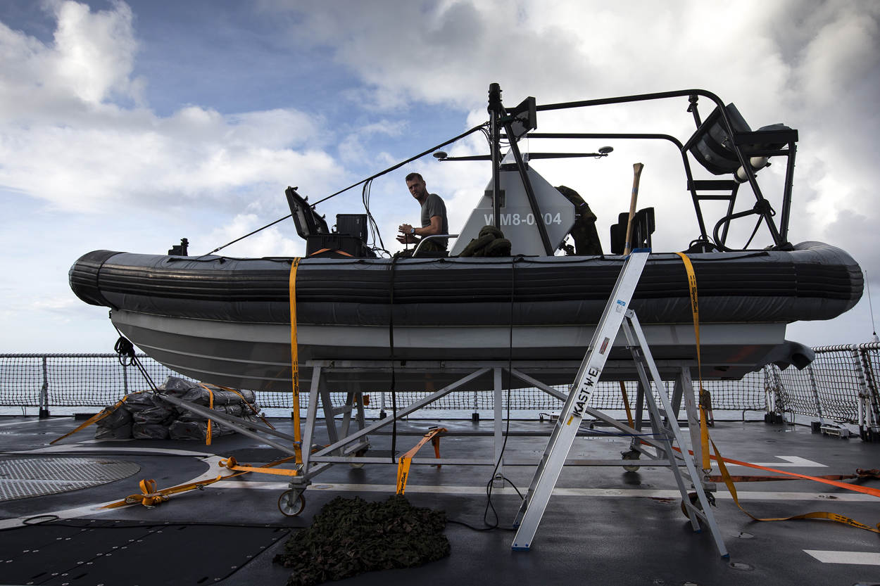 Dat grote, lichtgrijze schip in de verte vraagt om een nadere inspectie. Tientallen Haïtianen springen in hun bootjes en zeilen en peddelen richting het patrouilleschip Zr. Mr. Holland. Tussen de vaartuigjes dobbert een ander bootje, herkenbaar aan het camouflagenet en de computerapparatuur. Het is de RHIB van hydrografen LTZ 1 John Loog, LTZ 2OC Rob Bekink en LTZ 2 Willem van der Plas.