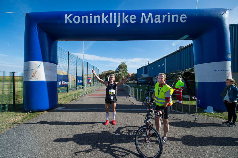 Ruim 100 deelnemers meldden zich 28 september jongstleden voor het NMK Halve Marathon op Marinekazerne Erfprins. De start vond ook dit jaar weer plaats in Callantsoog; de deelnemers werden daar met de bussen naartoe vervoerd. 11.00 uur precies klonk het startschot en werd er met een hoog tempo naar het fietspad langs de duinen gelopen. Met een paar stijgingen en de wind in de rug kwam de kopgroep heel snel voorbij het 5 kilometer-punt. Hier stond de eerste verzorgingspost gereed, om deelnemers van water, limonade of bananen te voorzien. De lopers oogden fris en streden hard voor de koppositie. Bij het 15 kilometer-punt was er een behoorlijke gat geslagen tussen hen en de overige lopers. In deze laatste kilometers zaten nog enkele lastige klimmetjes voor de deelnemers de finish in zicht kregen.