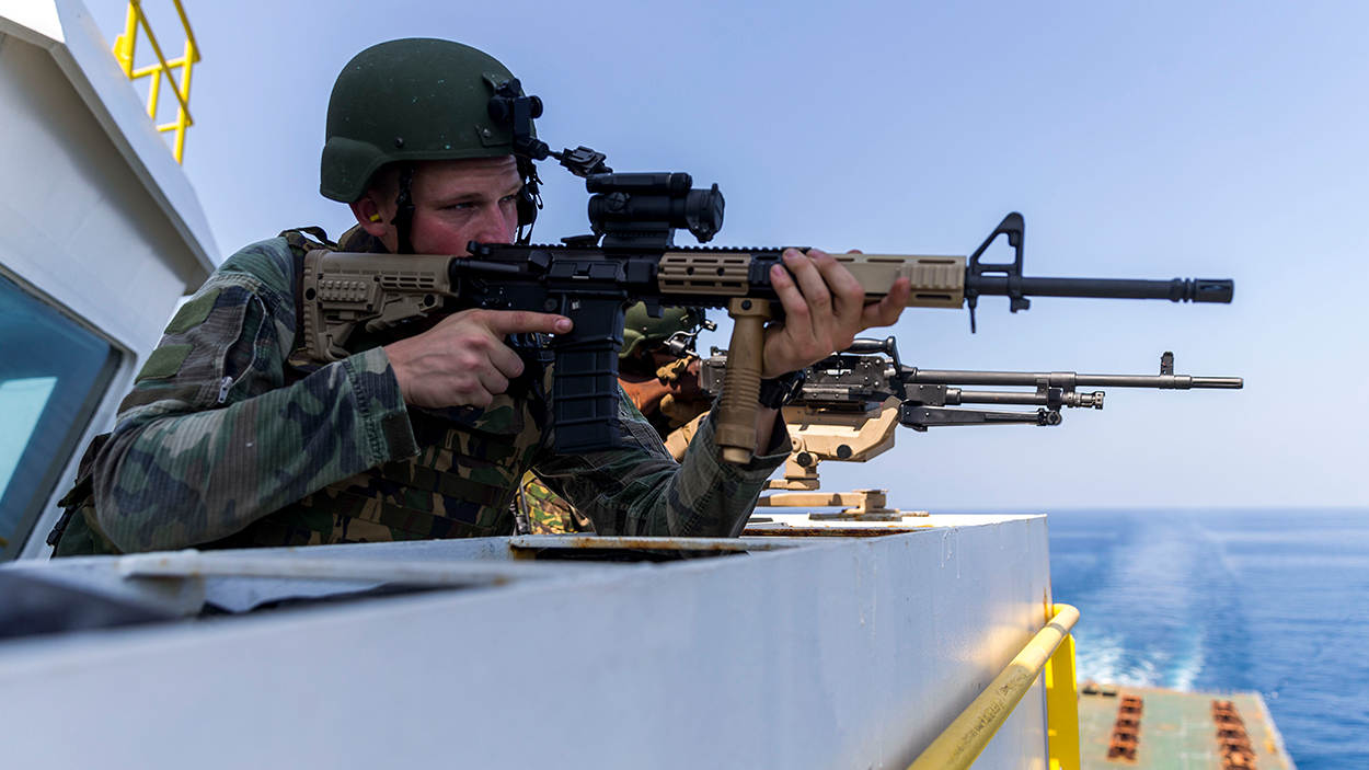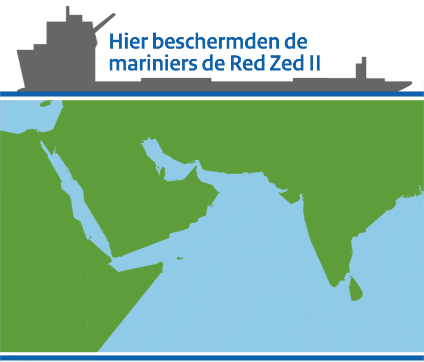 Het 200ste Vessel Protection Detachment (VPD) begeleidde afgelopen maand het zware transportschip de Red Zed II door piraat-gevaarlijke wateren. 11 mariniers beschermden het schip tussen Egypte en Sri Lanka tegen kapers. Kapitein Jan van Dijk sliep er in ieder geval een stuk rustiger door: “Met die mariniers aan boord voel ik me gewoon veilig”.