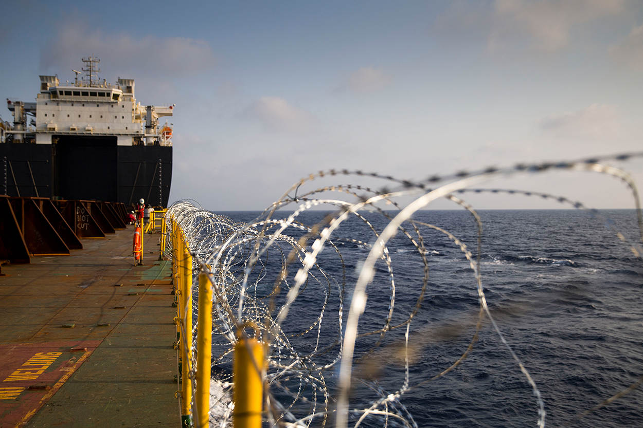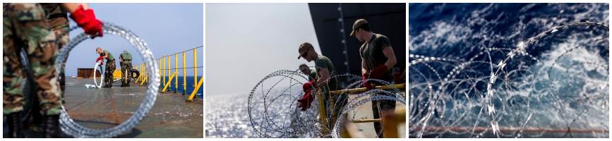 Eenmaal in het gebied lopen de mariniers 24 uur per dag wacht. Concertina’s (vlijmscherp prikkeldraad) zorgen er bovendien voor dat geen mens aan boord kan klimmen zonder zich te verwonden. 4 MAG-posten maken het mogelijk 360 graden in het rond te vuren.