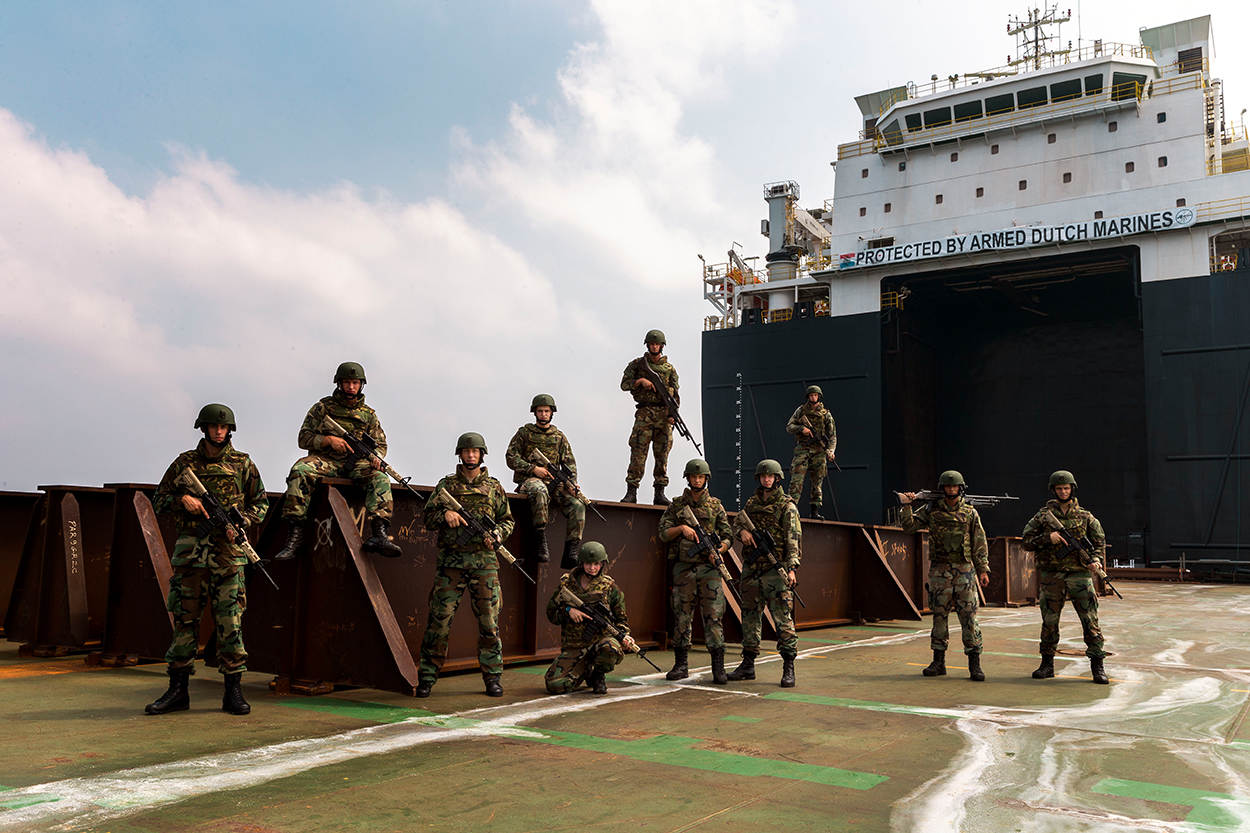 Sinds 2011 voorziet de Koninklijke Marine in deze behoefte. Schepen die onder Nederlandse vlag door de zogenaamde High Risk Area (HRA) moeten, krijgen voor 5.000 euro per dag 10 mariniers en 1 Algemeen Militair Verpleegkundige aan boord. Het hele jaar door staan 6 van dit soort teams paraat. In tijden van extreme drukte is dit op te schalen naar 11. Materialen om het schip te beschermen zoals wapens, prikkeldraad en medische voorzieningen, nemen zij zelf in 11 boxpallets mee.
