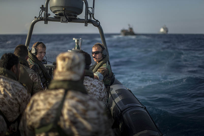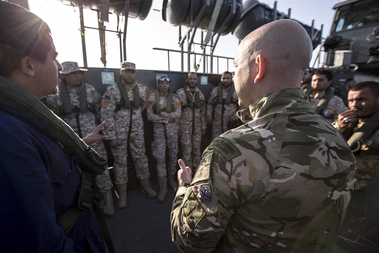 Voor de een leek lijkt de boarding van een Nederlands Landing Craft Utility door Libische trainees op totale chaos. Maar de Britse sergeant-instructeur toont zich tevreden. Met een ‘thumbs up’ beloont hij het doorzoeken van het landingsvaartuig en het fouilleren van de bemanning op volle zee. Richt EU-operatie Sophia zich van origine op het tegengaan van mensensmokkel in het centrale deel van de Middellandse Zee, met de komst van Zr. Ms. Rotterdam komt er een taak bij: Libische kustwachters bijscholen.