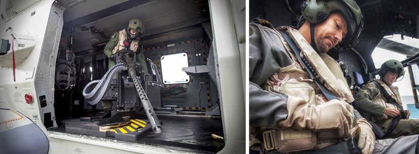 “Afhankelijk van de missie wordt bepaald welke boordmitrailleur de NH90 meeneemt, de MAG of de M3M”, zegt sergeant-majoor Piet. Als sensor-operator heeft hij onder andere de taak het bedienen van de MAG-boordmitrailleur. “De M3M is veel krachtiger. Een schot voor de boeg is hierdoor dreigender. Het is een nog duidelijker waarschuwing aan piraten of drugskoeriers.”