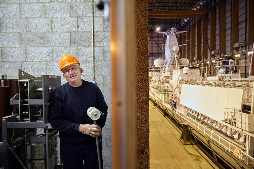 Nu 38 jaar geleden streek hoofdtechnicus Theo de Jong (60) neer bij het Energiedistributiebedrijf (EDB) op de marinebasis in Den Helder. Veel veranderde daar, maar niet zijn plezier in de wondere wereld van Volt, Watt en Hertz. Voor wie een technische achtergrond ontbeert of onvoldoende zat op te letten bij natuurkunde, is het een hele kluif om het jargon van de elektrotechnici te volgen. Het belang van hun werk staat overigens als een paal boven water. “Zonder het EDB is het koud en donker”, zoals De Jong het kort samenvat.
