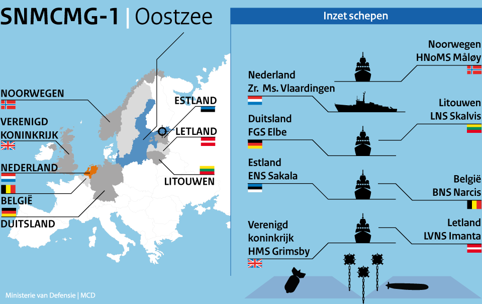 “Hoofdzaak is dat we onze taak hebben kunnen uitvoeren en dat er weer een mijn minder is”, relativeert Van Kasteren even later na bevestiging van de vernietiging. “Bovendien”, voegt de Estse ‘commander’ Johan-Elias Seljamaa, commandant van het vlootverband, toe, “laat deze operatie zien dat we in NAVO-verband (zie infographic, red.) kunnen samenwerken. Veel landen hebben goed getrainde individuele schepen, maar missen de vlootervaring. Ook leren bemanningen nu andere types schepen kennen met hun krachten en zwaktes.”