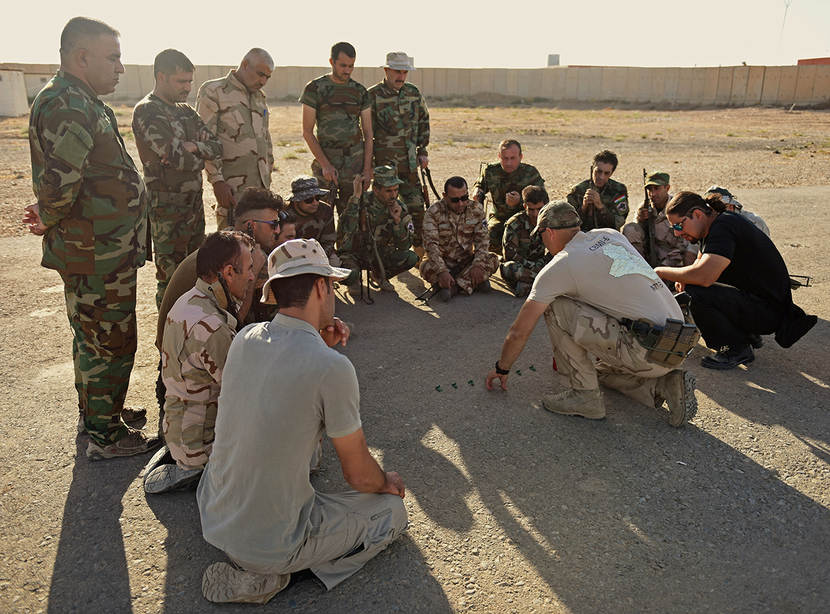 Tientallen kilometers van de zwaarbevochten stad Mosul geven Nederlandse mariniers – historische koosnaam: ‘Zwarte Duivels’ – training aan de Black Tiger-eenheid van de Peshmerga. De focus tijdens de lessen is de afgelopen tijd verschoven van offensief naar defensief.