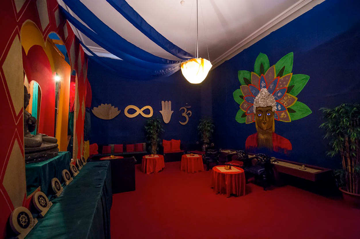 Telkens komen grote schalen sushi, frituurhapjes en broodjes hete kip voorbij. Mensen staan gezellig op de Chinese muur te praten, terwijl een groepje adelborsten voor een Japanse vijver met bier proost op een succesvolle avond. Ondertussen wordt er rustig gepraat in de boeddhistische tempel en voor de Taj Mahal whiskey geproefd.