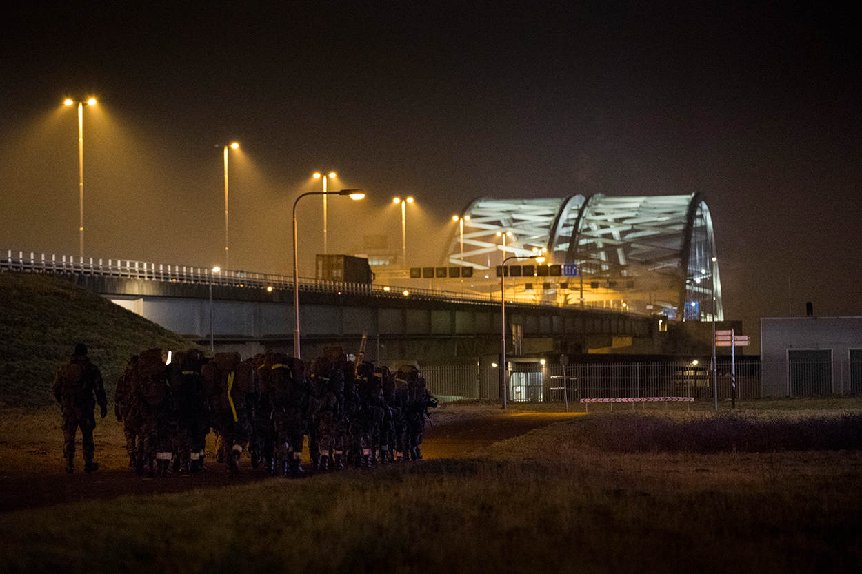 Dit is meer dan topsport. Deze gasten leven topprestaties zonder persoonlijk trainingsschema, luxe hotel, sauna, aangepast dieet en masseur. “Volgens mij zijn m’n voetzolen eraf gebrand”, reageert een van hen gefrustreerd. Strompelend beweegt hij zich naar z’n slaapzak onder de Van Brienenoordbrug. Hier mogen ze even rusten, alvorens ze 800 meter verderop hun baret in ontvangst nemen. De euforie is groot, maar ze zijn te uitgeput om dat onder woorden te brengen. Hij vervolgt: “Natuurlijk weet je dat het zwaar is en dat je die baret niet zomaar verdient. Maar ik ben mezelf wel echt tegengekomen.”