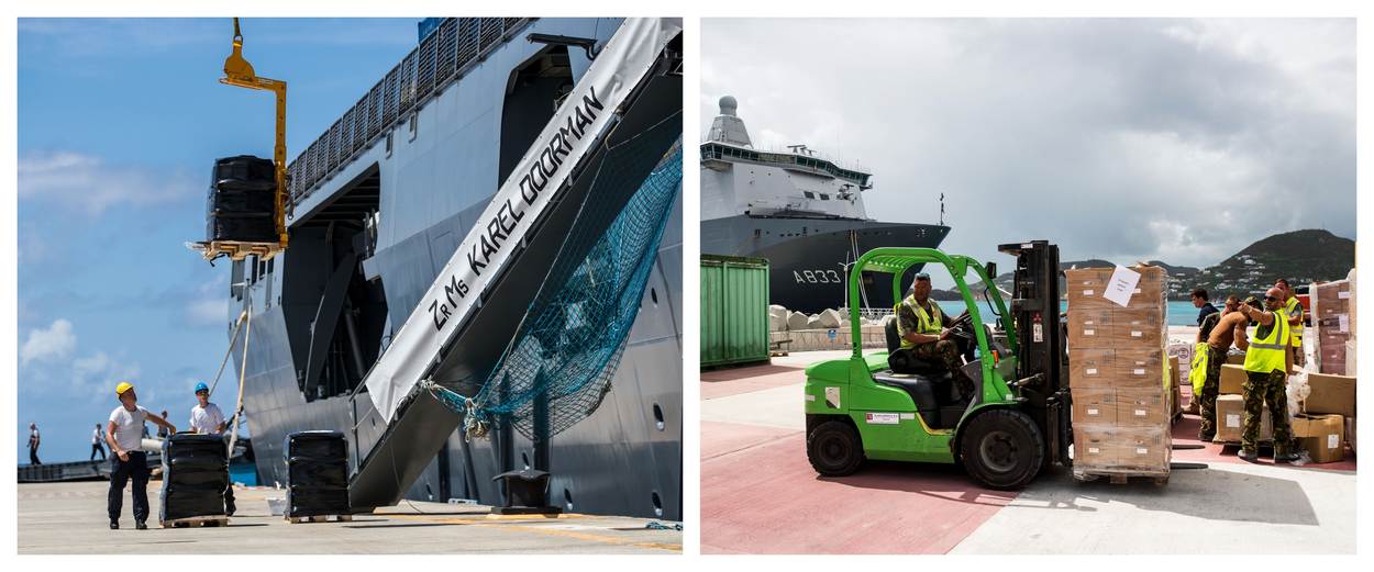 De luchtmacht vervoerde onder meer water, voedsel en hulpgoederen via de lucht. De marine bracht van alles en nog wat over zee. Mariniers, bemanningsleden van de Doorman en landmachtmilitairen ruimden puin op het land en de marechaussee ondersteunde lokale autoriteiten bij de uitvoering van politietaken. In totaal waren er volgens commandant Joint Task Force Sint Maarten luitenant-kolonel der mariniers Harro de Vries rond de 1.000 mannen en vrouwen betrokken bij de hulpverlening onder zijn motto: ‘You never regret to do the right thing’. “Maar de situatie wordt beter en rustiger”, stelt hij. “We zijn hier ook niet om baantjes in te pikken, dus die geven we zo snel mogelijk terug aan de lokale overheid.”