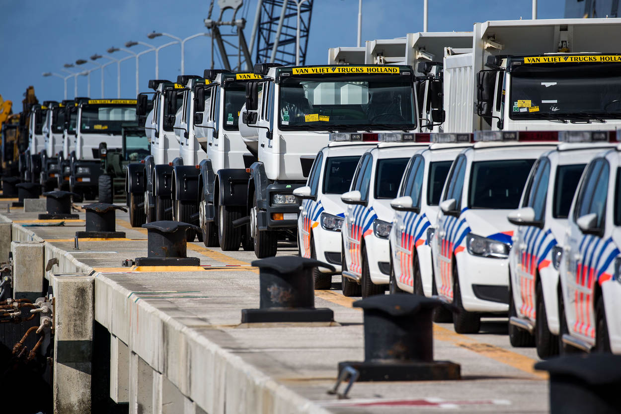 Inspecteur van Politie Bert van Dijk, tijdelijk werkzaam op het Bovenwindse eiland, was vooral in afwachting van 18 politieauto’s en 1 rijdend commandocentrum, ter vervanging van de vernielde meldkamer voor calamiteiten en noodhulp. “Ik vind het echt bijzonder dat die voertuigen hier ineens staan. Het is wel heel fijn dat de Karel Doorman niet is verkocht en deze wagens mee mochten.”