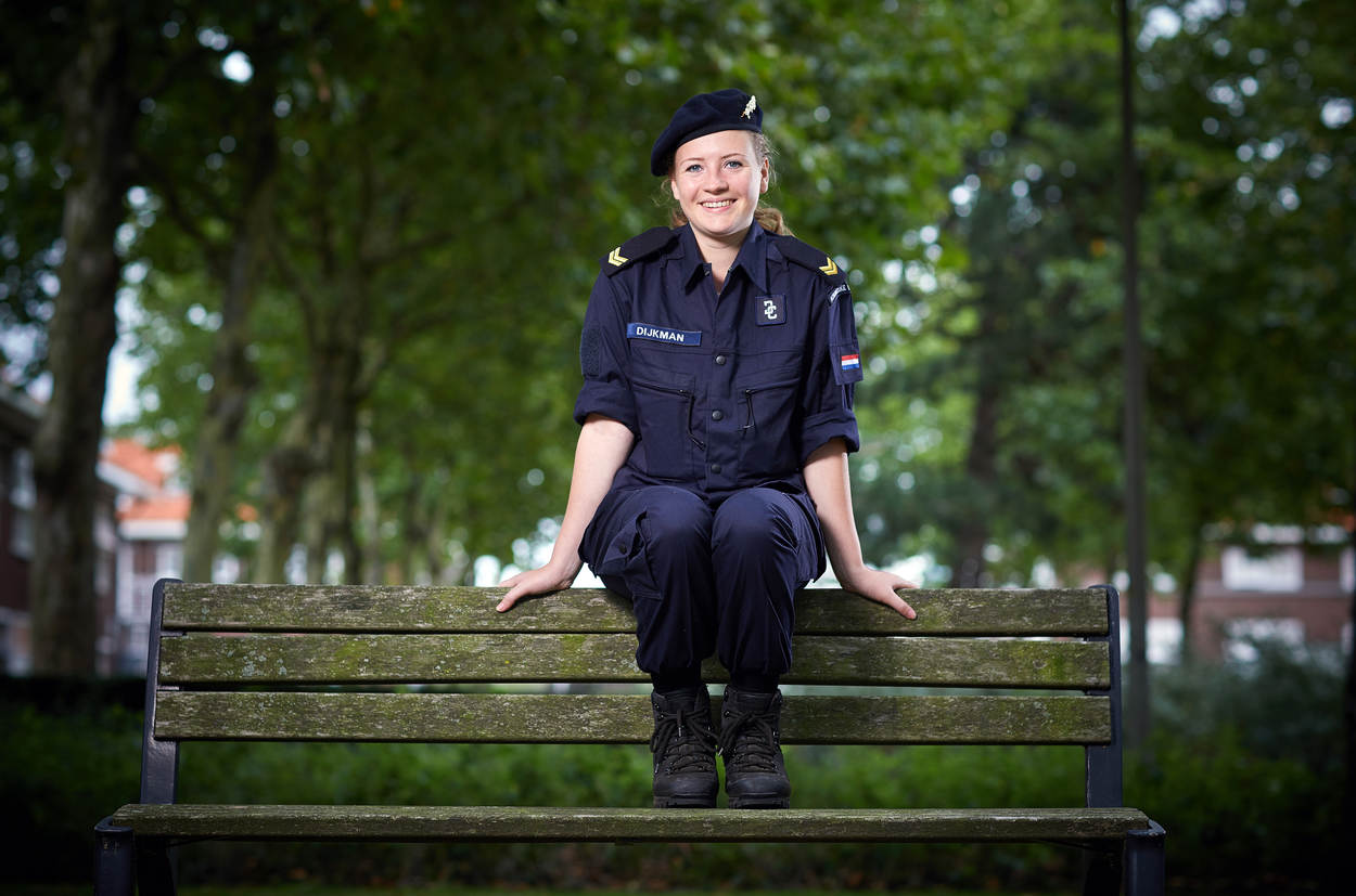 Van Defensie wist Guusje Dijkman nauwelijks iets, laat staan van mariniers. Met een familie vol juristen en zelf druk met zowel een rechtenstudie als een studie psychologie, lag het ook niet voor de hand dat ze naar de marine zou gaan. Tot Defensity College op haar pad kwam. Het programma dat studenten een bijbaan biedt bij Defensie. Betaald. En als militair.