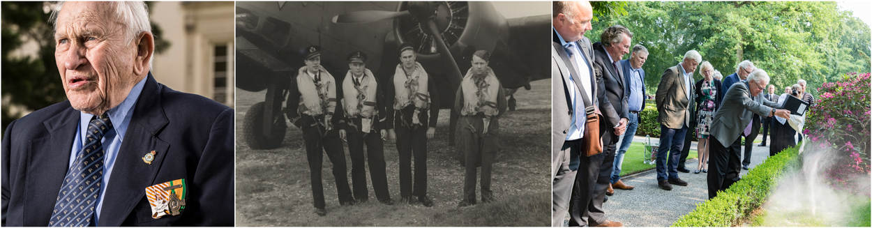 Andre Hissink, 98 jaar, luistert zwijgzaam naar de namen van zijn gevallen kameraden. Hissink vloog net als Hoenson bij het 320 Squadron. Hissink als officier-waarnemer, Hoenson als onderofficier airgunner. Toch leerden de 2 elkaar in 2014 pas echt kennen, bij de reünie van 70 jaar D-Day in Normandië. “Gedurende de oorlog kwamen wij weinig met elkaar in aanraking”, blikt Hissink terug, “maar we ondergingen precies dezelfde gevaren.”