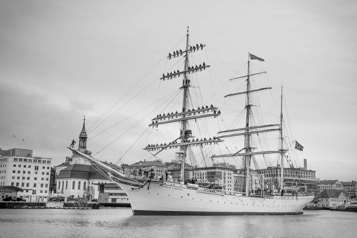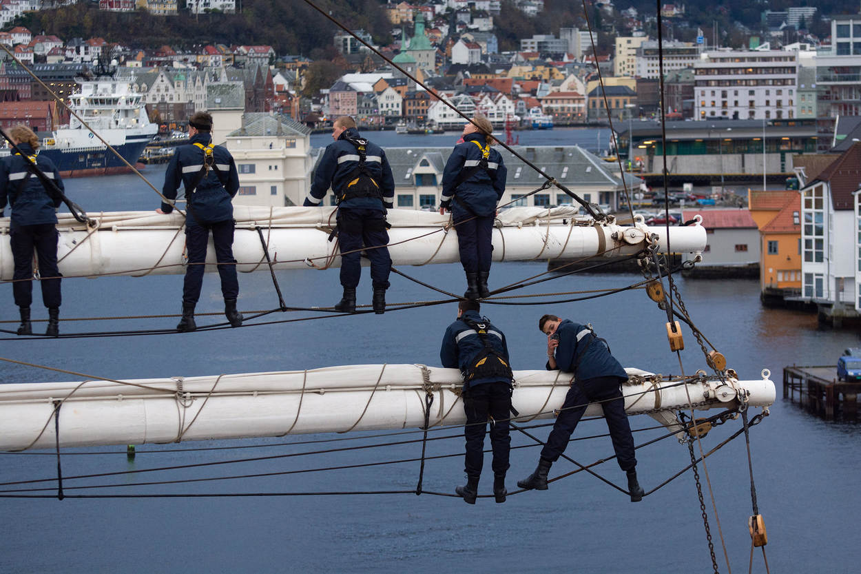 De laatste dag van de reis voer de driemaster op traditionele wijze de haven van Bergen binnen. Zoveel mogelijk adelborsten klommen in de voorste mast, om gezamenlijk zeemansliederen te zingen. Een tafereel dat vanaf de kant goed te zien, maar nog beter te horen was. Dezelfde avond nog zat promotie 2018 al weer in het vliegtuig naar Nederland. Na een Bootjesreis die uitdagend, maar bovenal onvergetelijk was.