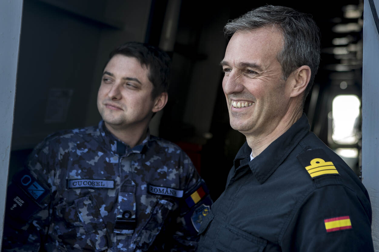 Met ‘wij’ verwijst de commandeur naar zijn internationale partners. Het viel eerder vandaag al op, we hebben te maken met een kleurrijke staf. Bulgarije, Roemenië, Polen, Albanië, Spanje, Duitsland, Turkije, Griekenland en het Verenigd Koninkrijk. Ze zijn hier allemaal vertegenwoordigd. Hoewel Boots met alle input en steun blij is, leunt hij deze weken vooral op zijn Turkse, Bulgaarse en Roemeense collega’s. Met enige regelmaat roept hij hen bijeen om gedetailleerd naar bepaalde situaties te kijken. “Dat werkt heel prettig. Zij kennen dit gebied, zoals wij Nederlanders de Noordzee kennen, patrouilleren constant in de Zwarte Zee en weten dus op welke bewegingen, op zee of in de lucht, we extra moeten letten.”