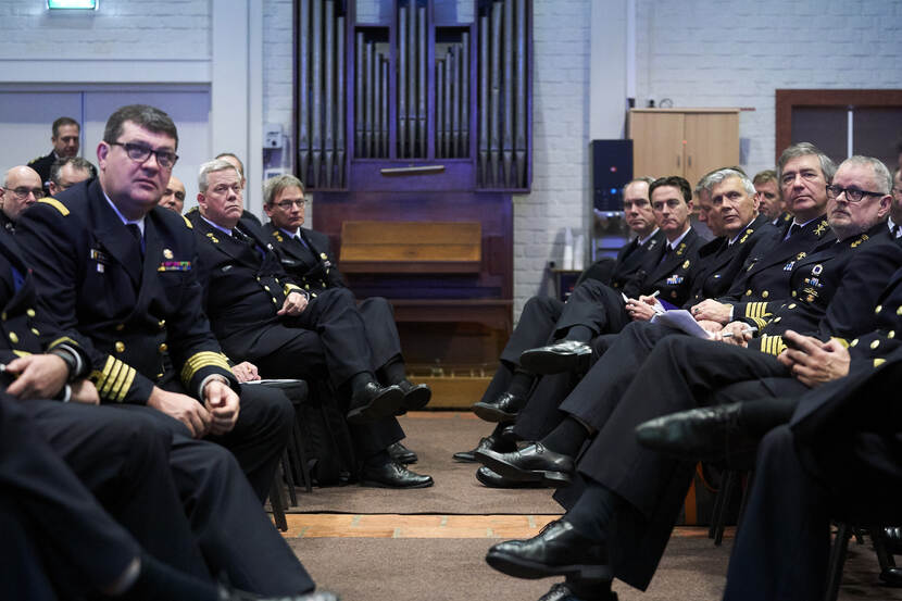 Het panel, gevormd door C-ZSK vice-admiraal Rob Kramer, generaal-majoor Frank van Sprang, vice-admiraal Ben Bekkering en professor dr. Bob de Wit (hoogleraar Strategisch Leiderschap), luisterde aandachtig naar de presentaties. Ook ‘toehoorders’, commandeur Huub Hulsker (COMNLMARFOR) en brigade-generaal der mariniers Jeff Mac Mootry (D-OPS), dachten actief mee met de voordrachten. Kramer knikte instemmend na enkele stevige conclusies aangehoord te hebben. “Dit zijn interessante discussies, maar het blijft een grote worsteling met de vraag hoe we hier invulling aan willen en kunnen geven. Vaak ontbreekt het aan de juiste middelen om dit te kunnen doen. De oude schoenen moeten weg, maar passen de nieuwe wel?”