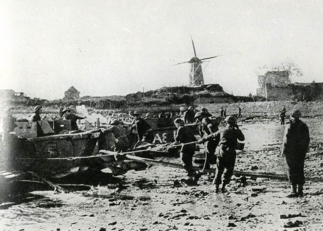"Tijdens de Slag om de Schelde landden er op 1 november 1944 militairen van de 4th Special Service Brigade bij Westkapelle en een paar uur later bij Vlissingen. De geallieerden wilden zowel vanuit het oosten over land, als via het zuiden en vanuit zee aanvallen. Oprukken van 3 kanten ontwrichtte de Duitse verdediging; de samenhang viel weg", vertelt stafmedewerker Militaire Geschiedenis Jaus Müller van het Nederlands Instituut voor Militaire Historie (NIMH). "Er zijn tijdens de verovering van Walcheren geen luchtlandingen uitgevoerd, zoals in Normandië. Daarmee waren de ervaringen te slecht. De meeste luchtlandingstroepen kwamen kilometers van de geplande dropzones neer. Dat kwam door het slechte weer en stress bij de vliegers, omdat de zweefvliegtuigen werden beschoten. Walcheren was met ongeveer 20 bij 15 kilometer ook te klein voor de grootschalige inzet van luchtlandingseenheden."